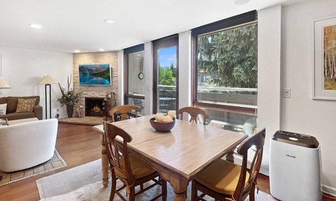 -Downtown location with mountain views – Just four blocks from the Silver Queen Gondola and perched on Main Street, the condo offers private south-facing balconies framing Aspen Mountain—perfect for morning coffee with a view