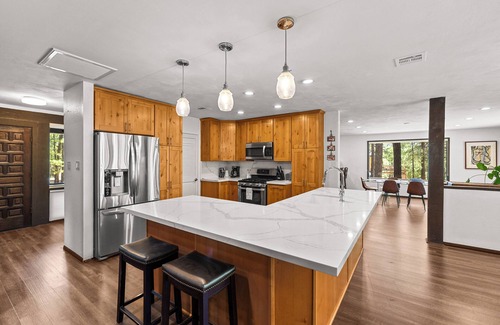 - Modern Amenities: Equipped with air conditioning, a newly renovated kitchen, Traeger grill, and a propane pizza oven, you can create unforgettable meals with ease during your stay.