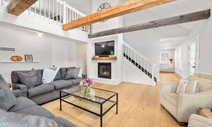 "Big Sky" Retreat is conveniently located near Newbury, Sunapee, and New London, offering easy access to restaurants, activities, and outdoor adventures.