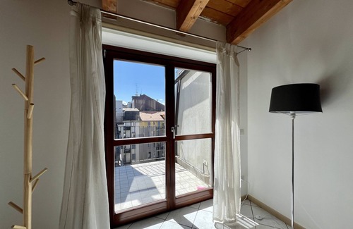 Located in via Goldoni, an elegant and quiet area of Milan, this charming penthouse on the 6th floor (accessible by elevator up to the 5th floor and a short flight of stairs) offers a suggestive view, tranquility, and easy access to all the experiences of Milanese life.