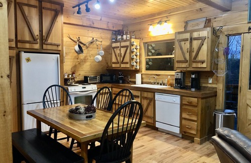 Inside the Cabin, you will experience a cozy comfortable atmosphere with a gas log fireplace (push a button on the wall) and Smart TVs in every room! Kitchen is fully equipped, including a gas grill just outside the back door. If you don't feel like cooking, there are many great restaurants close by (within 8-12 miles).