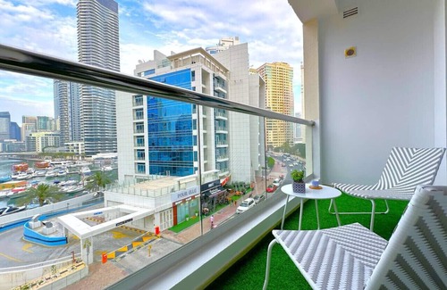 This elegant accommodation is ideal for couples or friends who want to spend a great holiday in the most central area of Dubai Marina, just steps from the Beach and JBR, surrounded by restaurants and bars, just a 10-minute walk from the metro station. DMCC, the studio connects the balcony with the interior area with detailed and minimalist decoration, which will make you feel in a cozy environment to rest after walking and enjoy the wonders of Dubai Marina.