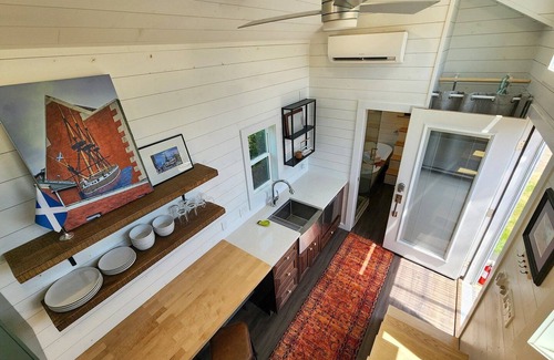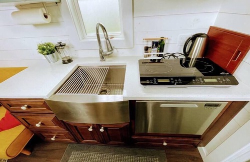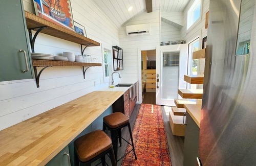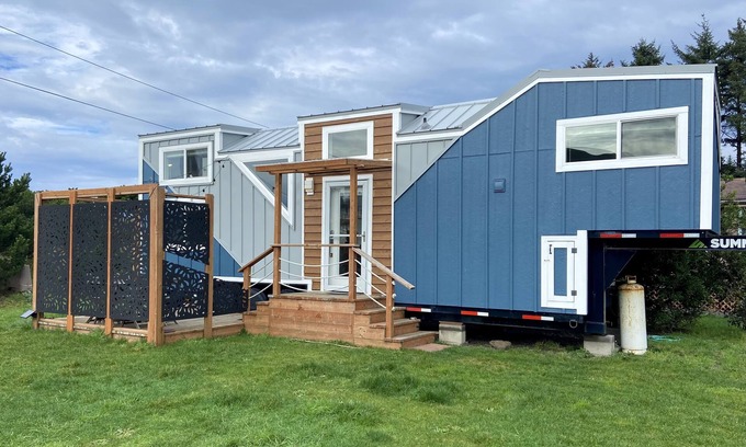 This tiny is located in Tiny Tranquility park, home to over 40 tiny homes - and just a 5 minute walk to miles of pristine beaches. Within the park, you'll have access to our Doug Fir lodge with ping pong, pool table, darts, board games, a TV area, free laundry after 7 pm, a fitness room and an outdoor eating and grilling area. We've also now opened our Redwood Commons with a large second story great room with ocean views, a beautiful sitting area, full kitchen and an outdoor deck. Walk around the property and check out our dog park, greenhouse with community garden and a large field to run your dogs or the kids. We're 2 miles from Waldport, 5 miles North of Yachats and a 20 minute drive to Newport. also have access to: our Doug Fir Lodge with pool table, ping pong, darts, TV room with 65" flat screen and a fitness room; a wood burning stove and outdoor eating and grilling area; our large enclosed dog park; and our Redwood Commons featuring a large great room with ocean views and an outdoor deck