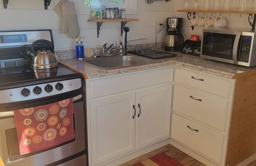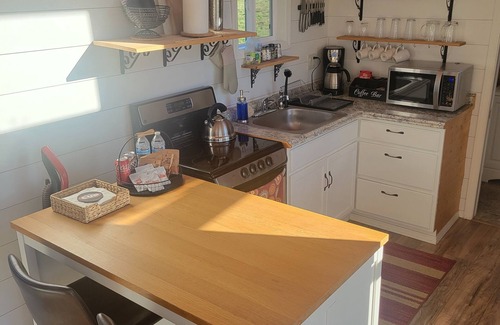 Thank you for considering Buena Vista Lavender Farm! We are located just outside of Silverton, OR. The Big Tiny Home has everything you need for comfort and convenience. This delightful tiny home offers two sleeping areas; one cozy bedroom on the lower level with a queen bed, and an open lofted area with a full bed (requires climbing a ladder). The bathroom is equipped with a shower and a hair dryer. Towels and toiletries are provided for your convenience. The Big Tiny also offers a full kitchen with a stove, oven, full-size fridge, coffee maker and all of the kitchen basics. With amenities like an outdoor grill, heating, WiFi, and A/C, guests can stay comfortable year-round.