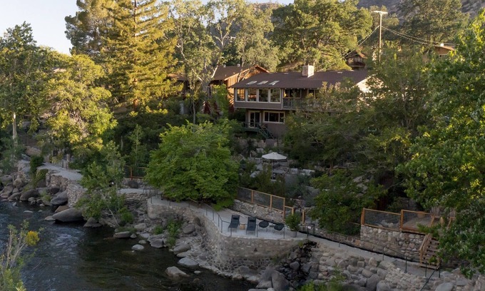 Outside, the cooling river refreshes the landscape as it passes by, surrounding you with the calming sounds and scents of the southern Sierras. In the landscape, you'll find native plant-filled terraces, seating areas, a generous hammock, and mature shade trees. The large patio includes a dining area with propane BBQ (propane provided) and wood-burning chiminea (firewood bundles for purchase at the house). Lounge on the deck or under the shade of a dogwood tree and watch the river go by.