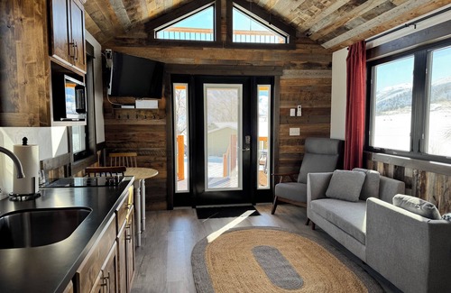 Discover this beautiful 1-bedroom gem in Salmon. Perfect place to stay for your Goldbug Hot Springs hike, and only 10 min from downtown Salmon. This cozy tiny home features a full bed in the bedroom and a loft with 2 twin beds. Eat outside at the table on the front porch, or head up to the upper deck to lounge. There are beautiful views of the mountains and surrounding rural area, bird watching, and wildlife viewing. Guests can enjoy the convenience of a washing machine and dryer, heating, AC, and WiFi. The bathroom offers a refreshing shower and a hair dryer. We hope you'll enjoy your stay at our tiny home.