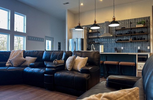 Escape to the Big Wolf Barn in Jackson, MI for a lakefront vacation filled with seclusion and unforgettable memories. This 5-bedroom, 2-bathroom retreat offers ample space for your group. Gather in the great room for the game or get in your own on the ping pong and foosball tables. Explore the connecting Mansion property with nature trails, a pond, and a basketball/pickleball court. Docks are avai
