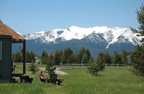 Our cozy cabin is located in Bigfork on seven acres with a spectacular view of the Swan Mountains. Its a perfect romantic get-away for a couple – no children please. Max. occupancy: 2 The cabin is a nicely decorated studio (300 sq. ft.) with a queen bed, futon couch, dining table, kitchenette and bathroom with shower. Just over a mile down the road is the Swan River Nature Trail that you can bicycle or walk along - it takes you into Bigfork village. While at our cabin, you can relax on the deck in this peaceful setting and enjoy the mountains, amazing sunsets, bird watch, star gaze and see deer stroll by occasionally. There is a 5 day minimum.