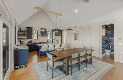 The main level has an open living/dining/kitchen concept along with a convenient powder room and easy access to the rear deck, where you can enjoy the built-in Gas grill or relax on the covered portion next to a cozy fire. Also on this level is the Master bedroom, which features its own entry to the deck, an adjustable (King) Mattress and a luxurious ensuite bathroom including a soaking tub.