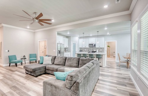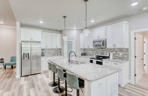 Nestled on a quiet cul-de-sac, our home offers five bedrooms and three full baths—ideal for families and large groups. Sleep soundly in a king-bed primary suite with ensuite bath, three guest rooms with queen beds, and a bunk room with two twin-over-full bunks for kids or singles. Two additional full bathrooms feature walk-in showers and tubs.