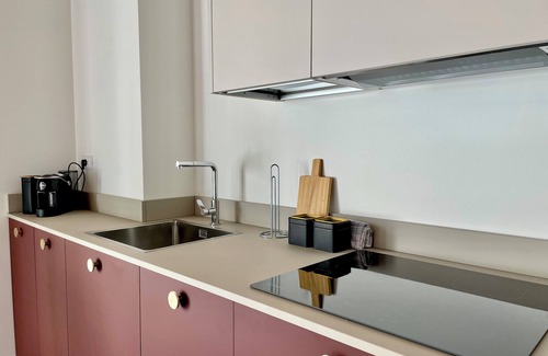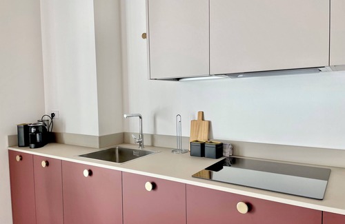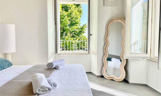 The entrance opens onto an elegant and relaxed living area: light tones, soft lighting, essential furnishings and decorative details that create an intimate and welcoming atmosphere. The double bedroom is bright and clean in its lines, with a comfortable padded bed and a view of the greenery. The kitchen, equipped and modern, invites you to a slow breakfast or a romantic dinner at home.