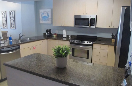The KITCHEN is fully stocked with pots, pans, utensils, and dishes. Appliances include a blender, toaster, coffee maker, microwave, refrigerator/freezer and dishwasher. You can also find lovely granite countertops and stainless-steel appliances in our kitchen. Our unit has a LAUNDRY ROOM with a full-size washer and dryer. An ironing board and iron is also available for your use.