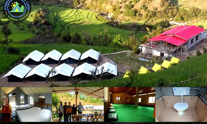 Providing mountain views, Binsar Adventure Camp in Binsar provides accommodation, a garden, a shared lounge and a terrace. A balcony with river views is offered in all units. Hiking can be enjoyed nearby. Ganai is 34 km from the camping, while Bāgeshwar is 35 km away. The nearest airport is Pantnagar Airport, 199 km from Binsar Adventure Camp.