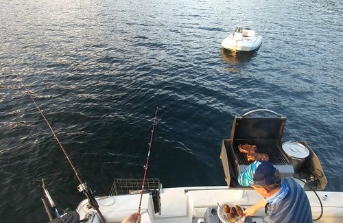The fybridge for upper views 10 ft off the water has a bluetooth stereo to compliment the ocean breeze and sounds of oyster birds and eagles soaring.