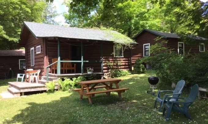 Birch Cabin is a rustic log cabin offering a classic ‘Up North’ retreat in the heart of the Les Cheneaux Islands. One of eleven cabins at Les Cheneaux Landing Resort, this cozy escape is nestled between the shoreline towns of Cedarville and Hessel, only 35 miles northeast of the Mackinac Bridge, making it an ideal destination for relaxation and outdoor adventure.