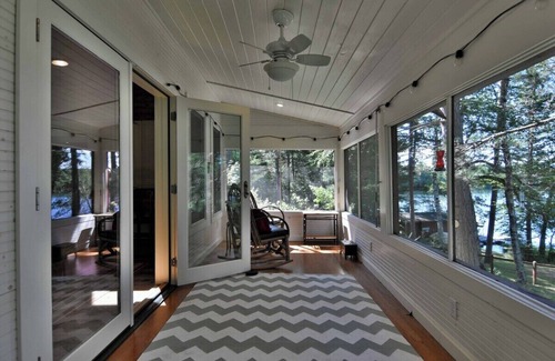 This beautifully renovated and upgraded cabin offers you a spacious great room with comfortable furnishings, gas fireplace and flat screen TV. From the great room open the French doors and step onto the screened in porch where you have a beautiful view of the lake. Down the hall are the 4 bedrooms and 1 full bathroom. The fully equipped kitchen has a gas stove top, dishwasher and a 4 stool kitchen island. Up a flight of stairs is a quaint sitting area for an out of the way place to read or if you need a quieter place to check in with the office.