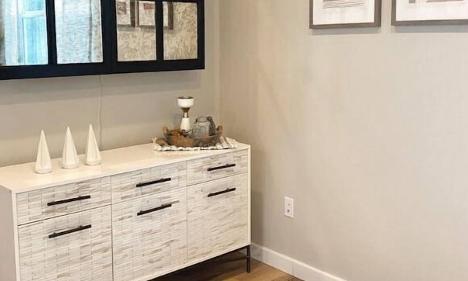 The guest house is above our 3 car garage, with the washer and dryer in the bathroom closet of the apartment. Decorated by new and up-cycled higher end materials, this space has been a personal joy to create! One could say we leaned into the "Put a bird on it" parody from Portlandia.