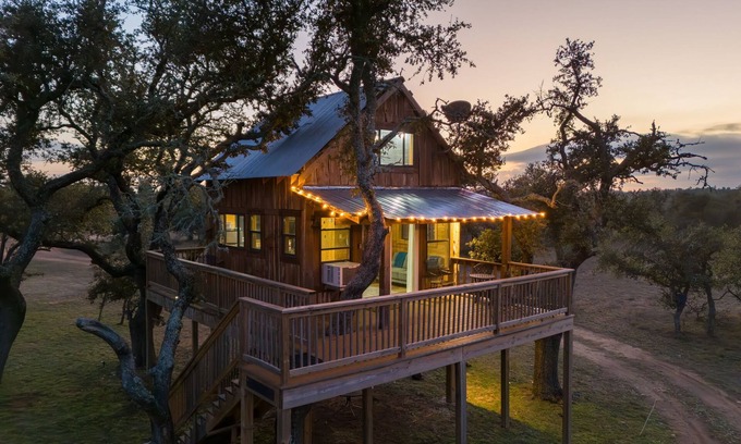 Willow Sky Ranch features 3 separate living areas, this being the most unique - The Bird's Nest Tree House. The tree house features the best views on the property from the wrap around deck! Nestled on 75 total acres of the Texas Hill Country and located directly on historic Willow City Loop, the Premier Bluebonnet destination in all of Texas. There is ample space to explore nature, watch the herd of antelope in the pasture, or relax in the common Grove area under 100-year old oaks
