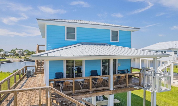 Your stay at Bird’s Up Retreat comes equipped with a plethora of amenities designed for relaxation and socializing. Enjoy the open floor plan that seamlessly connects the living area, dining, and kitchen, all adorned with coastal charm. The fully equipped kitchen is perfect for meal preparation, while the dining area comfortably seats over eight guests. Spend cherished moments on the covered porch or the deck area, where you can take in stunning sunrises and sunsets. Plus, the convenience of a cargo lift simplifies unloading luggage and supplies, allowing you to focus on enjoying your special day.