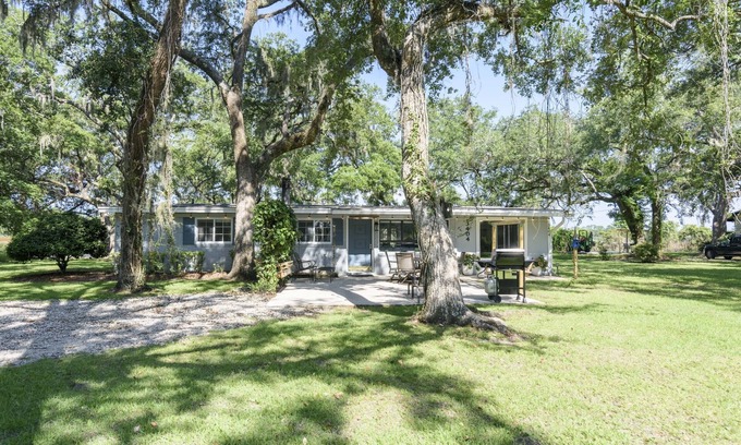 Kick back and relax in this calm, stylish country home. Enjoy the beautiful view across the saw grass flats out back. Perfect for viewing sunset. Relax on the front patio or back porch and enjoy the bird song in the air. Our property is covered with huge Live Oak trees that are 100’s of years old.