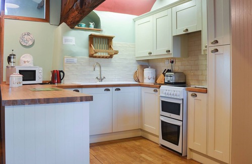 An open plan cottage with balcony overlooking gardens on a former farmstead. Peaceful rural retreat close to both coast and country.. Ground Floor: