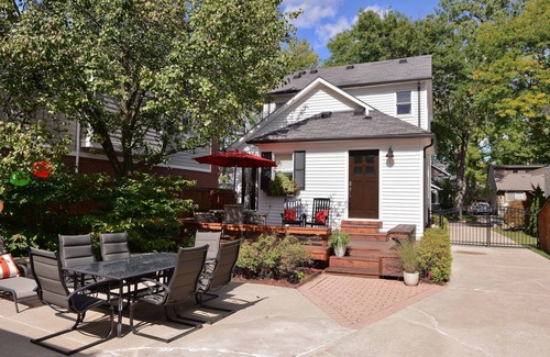 Chic 2 story perfect 10! modern luxury in the heart of historic down town Birmingham's tree lined street. Filled with new furniture and loaded with charm and all the latest updates! Gourmet Kitchen with highline appliances Granite counter tops and hardwood. 2 Huge new, big screen TVS cute back yard private with new stainless BBQ big deck space for outdoor grilling. 3 bedroom1 and 1/2 bath immaculate and impeccably clean. Planked by two huge parks. This is a west of Woodward gem! Separate office, furnished for work, on main floor with high speed, Walk to town.