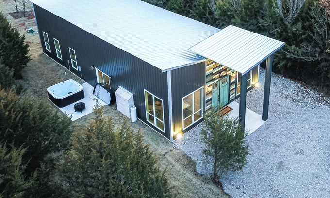 Newly built Bison Cabin! Unwind in the hot tub, challenge friends to a game of pool or air hockey, & explore the various amenities available. Cabin provides a quiet escape from everyday life, with comfortable beds ensuring a good night’s sleep, full kitchen, & a fireplace that's easy to use. Includes board games, cards, & books to fill your time. Located just a couple of miles from the I-35 Purcell exit, this location offers access to shopping & dining w/out the hustle & bustle of city life!