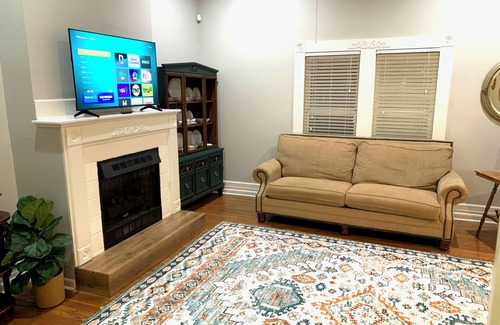 Bison Hall 7 is a centrally located house 1 block from Searcy’s downtown court square and 1 mile from Harding campus. Our house is within walking distance to many great restaurants and coffee shops around the court square. Our place is roomy with a large living room and kitchen. Street parking is available directly in front of the house, with additional off street parking in the rear. This house is a duplex style house and boasts 2 inviting bedrooms with 1 king bed and 1 queen bed. The bathroom features a jetted bathtub and a hair dryer for your convenience. Enjoy the AC, heating, iron, and WiFi during your stay. We're happy to assist with any questions while you stay at our townhome. We ask for no smoking on the property and no pets