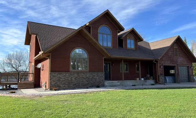Gaze at the stars from the beautiful wrap-around deck. Spend the day relaxing in the shallow sandy water. Enjoy the evening with a bonfire on the beach shore, playing bags from the walkout basement, with tons of activities to keep the family busy: playground, dartboard, Air hockey table, Shuffleboard table, pac-man video games, pellet smoker/grill, foosball, sauna, wet bar, TV's, Internet, and too many other things to list!