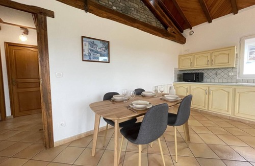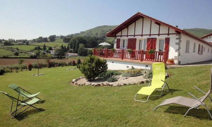 Pretty independent gite near the owners' house. Single storey cottage. Equipped kitchen area (microwave), living room, lounge (CD and DVD player). 2 bedrooms (1 double bed. 2 single beds). Bathroom (shower and bath). WC. Cellar (freezer). Gas heating extra. Parking, terrace and private swing, large independent garden. Garden furniture, barbecue. Linens provided. Beautiful view of the village and the mountains, 1km from the start of Mount Baigurra (897 meters), and 3km from the leisure center: on-site catering, paragliding, mountain biking, hiking or possibility of taking the little train to climb to the top . Village between sea and mountain.