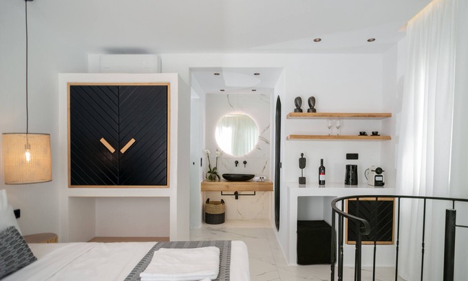 Best-rates for the Black Concept Maisonette Naxos starts from $201 per night with includes Air Conditioner, Parking, Bedding/Linens, Wellness Facilities, Fireplace/Heating, Internet, Laundry, TV, Security/Safety, Child Friendly, Kitchen with all other amenities. Perfect for Weddings is committed to ensuring every guest experiences a comfortable and extraordinary stay, whether planning a romantic getaway, a honeymoon, a pet-friendly stay, or celebrating with the entire wedding party.