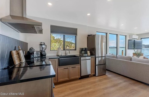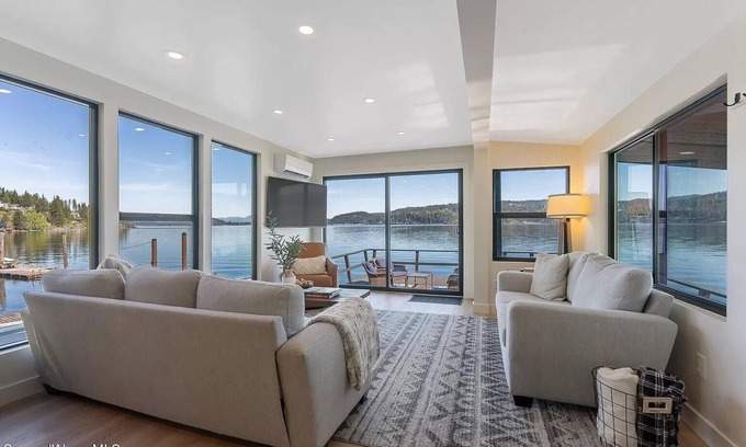 Escape to an unforgettable lakefront experience. You couldn't get closer to the water staying at this stylish 3 bedroom home on Lake Coeur d' Alene. There is nothing quite like viewing a sunrise or sunset from the huge deck, that stretches out over the water.