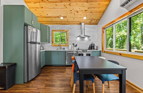 Perched in the perfect back corner of private gorge community, Black Pearl is our brand new cabin that oozes style and creativity. The large screen in porch and modern appeal make for the perfect place to rest and relax after a day of exploring the gorge, or maybe exploring under the gorge as Black Pearl is only 1 mile away from the famous underground kayaking here in the Red.