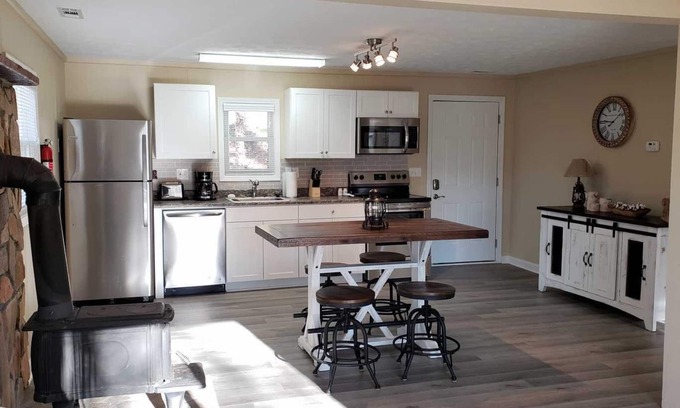 This rustic 2 bedroom home has been completely renovated with a welcoming cabin atmosphere. Perfect for a family of 4 or two couples. Come enjoy the mountains and stay a while.