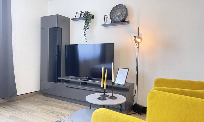 Best-rates for the Black%Yellow Designer Apartment Bielefeld starts from $132 per night with includes Security/Safety, Bedding/Linens, Wellness Facilities, Fireplace/Heating, Hot Tub, Laundry, Parking, Child Friendly, Internet, Kitchen, TV with all other amenities. Perfect for Weddings is committed to ensuring every guest experiences a comfortable and extraordinary stay, whether planning a romantic getaway, a honeymoon, a pet-friendly stay, or celebrating with the entire wedding party.
