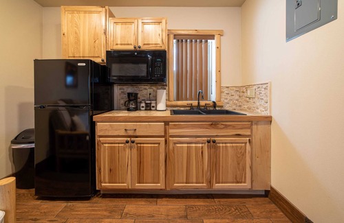Black Bear Lodge is one of 9 at The Totem Lodges in Indian River, Michigan. Blackbear Lodge is a Suite that includes a living/dining room, with gas fireplace, a separate bedroom with a Queen Bed and Twin Bed complete with bed linens and extra sheets and pillows in closet for futon that sleeps 2 and bathroom with a large tiled shower. Towels and bathroom linens are provided. A blow dryer is provided for use. Each Suite has a refrigerator, microwave, and coffee maker with complimentary coffee, creamer and sugar. Coffee cups, plates, bowls, and silverware are available. Free vehicle parking with room for limited Snowmobile/AV Trailers and Boats. Laundry Facility is on-site and available for guest use at no cost after 4:00 pm Hi-speed Wi-Fi is included. We would love to have you stay and play in beautiful Northern Michigan.