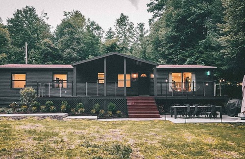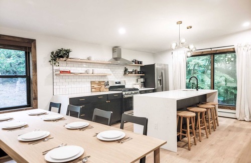 For your wedding stay, Blackbear Lodge - Luxury Cabin, Kid-Friendly offers an idyllic escape just below Hunter Mountain in Chichester, NY. With a perfect blend of luxury and homey charm, this cabin is designed to cater not only to couples but also to families and friends celebrating together.