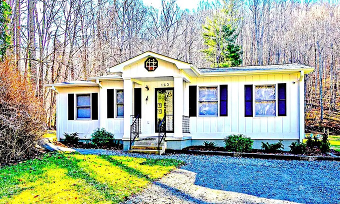 Welcome to Blackberry Bliss: Charming 3 BD, 2 BA Creek-Front Cottage Near Weaverville, your ideal retreat for a picturesque wedding getaway. Nestled along the serene creek front, this charming cottage accommodates up to nine guests, providing an enchanting space to celebrate your special day with family and friends. With stunning natural surroundings and proximity to the renowned Fields of Blackberry Cove wedding venue just a short walk away, you can seamlessly blend your wedding festivities with a tranquil escape in the heart of the beautiful Reems Creek valley.