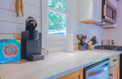 The kitchen is filled with plenty of plates, drinkware, cookware, and items to make your stay comfortable including a Blender, Coffee Maker (regular and Keurig), and Toaster. The laundry room is equipped with not only the washer and the dryer but also has some cleaning supplies if needed: Broom & Dust Pan, Mop & Bucket, laundry detergent, etc.