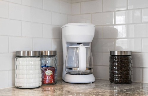 This kitchen is fully stocked with essentials to complete the home-away-from-home experience.