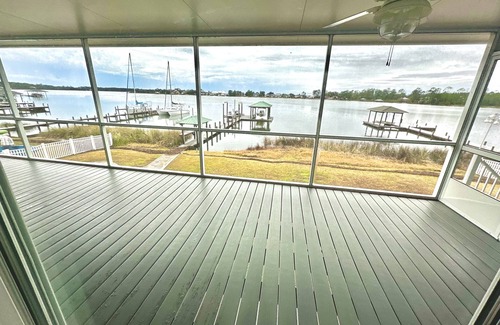 Welcome to paradise! Large fenced waterfront property with a boat dock. Bring your boat and tie up! Boat ramp at the end of the street. From the dock you can see dolphins, heron, pelicans, and skimmers. Full wrap around porch, with large screened in porch to enjoy your morning cup of coffee and take in the breathtaking views. Close to beaches, downtown Pensacola, and all of the natural wonders of NW FL.