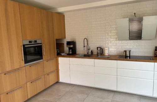 Blaues Haus Plätlinsee is a recently renovated vacation home in Wustrow where guests can make the most of the garden and barbecue facilities. Housed in a building dating from 2020, this vacation home offers free Wifi and free private parking. Outdoor seating is also available at the vacation home. Offering a terrace and lake views, the spacious vacation home includes 3 bedrooms, a living room, satellite flat-screen TV, an equipped kitchen, and 2 bathrooms with a walk-in shower and a bath. Towels and bed linen are featured in the vacation home. There's also a seating area and a fireplace. Landestheater Mecklenburg is 14 miles from Blaues Haus Plätlinsee, while Mirow Castle is 12 miles away. Rostock-Laage Airport is 72 miles from the property.