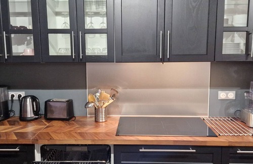 Kitchen: Oven, Microwave, Induction hob, Fridge/freezer, Dishwasher, Kettle, Toaster, Coffee machine, Nespresso machine, Crockery and cutlery (20 people), Kitchen utensils, Cooking utensils: salt, pepper, oil, vinegar, sugar, coffee, cocoa, tea...