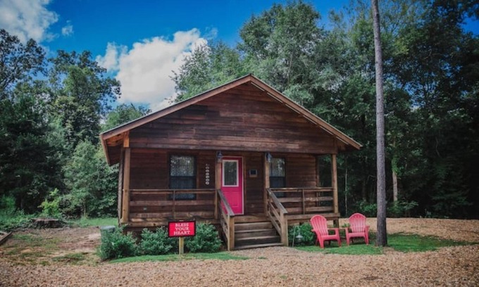 Bless Your Heart” is surrounded by acres of southern pines! Located near Leaf River, we invite you to an "unplugged" stay in the quiet, serene setting of The Cabins at Brookside. Enjoy coffee on the porch of your cabin while the birds sing to you. Located 8 miles from downtown Ellisville and only 15 miles from downtown Laurel where you can visit shops and restaurants featured on HGTV’s HomeTown!