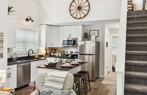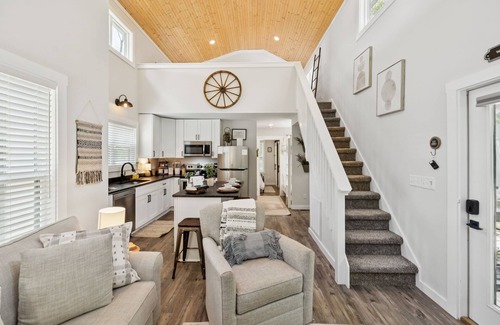 Fully Equipped Kitchen: Create delicious meals in our fully equipped kitchen, complete with everything you need to whip up a feast. Dine al fresco on your private deck or at the charming kitchen island.