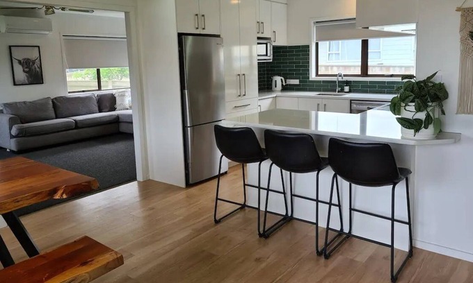 This home offers free Wifi, a well-equipped kitchen, laundry, and a 'help yourself' veggie garden. 3 bedrooms with 1 king, 1 queen & 1 double bed. Portacot on request.