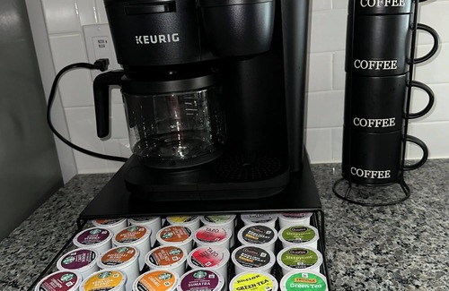 • Microwave, coffee maker, pots/pans, glasses, dishes, and utensils in the kitchen