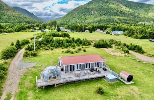 Blissful Beachfront Bungalow Beach- Hot tub & Sauna-All Weather Dome-Private is located in Aspy Bay. Blissful Beachfront Bungalow Beach- Hot tub & Sauna-All Weather Dome-Private provides accommodation, featuring Bedding/Linens, Spa, Fireplace/Heating, among other amenities. This House features Bedding/Linens, Spa, Fireplace/Heating, to make your stay a comfortable one.
