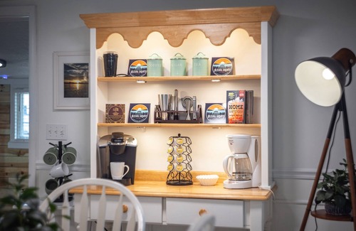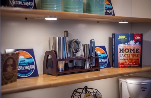 • Fully stocked kitchen with modern appliances, Keurig + drip coffee options, extra ice machine, and a breakfast bar