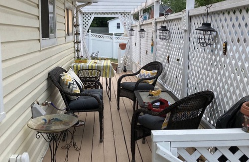 The Bee by the Bay has a fenced yard for your family and pets to play safe and securely. Veteran owned business.
